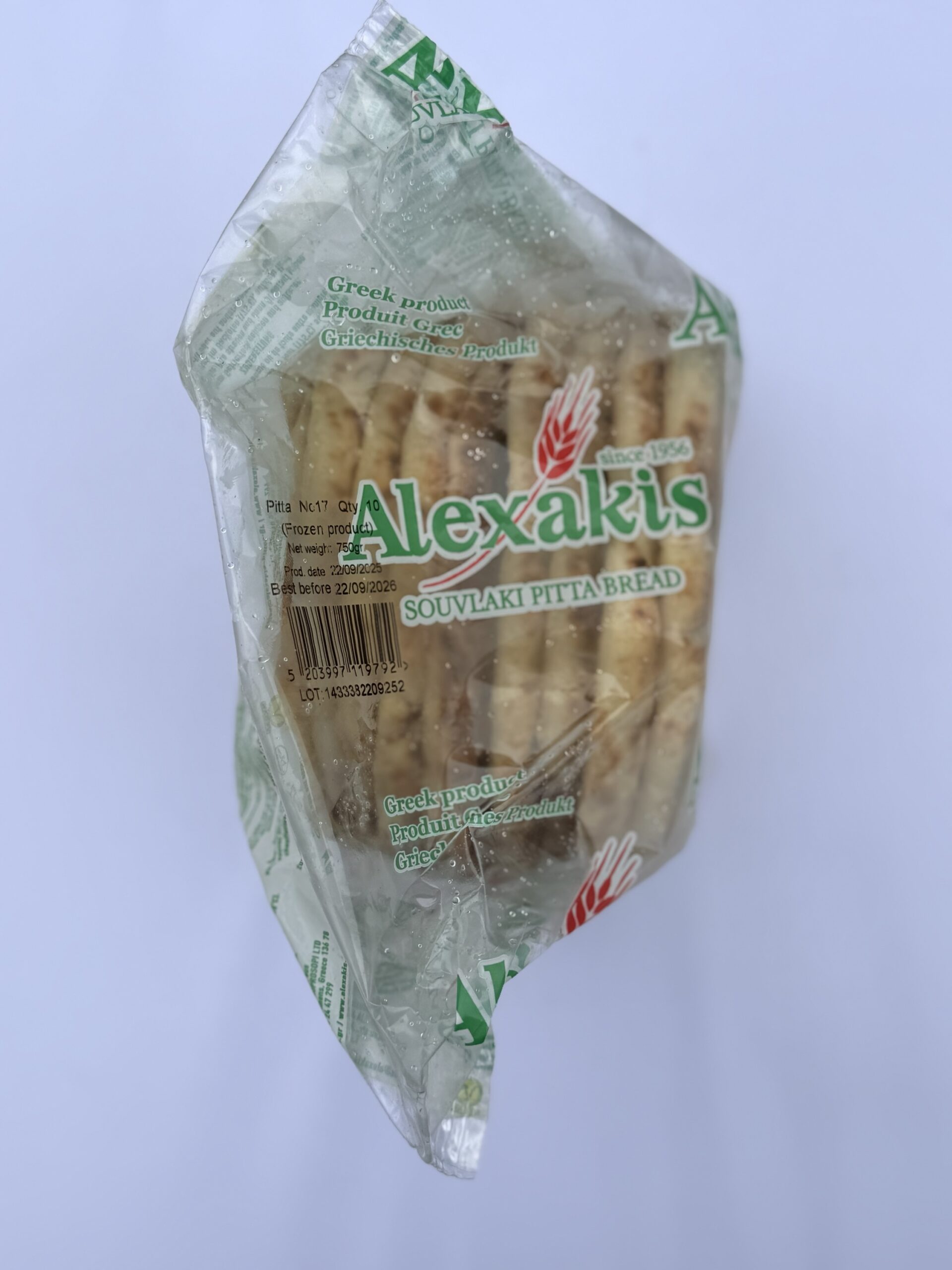Alexakis 17cm Greek Pitta is a soft, pre-baked, traditional flatbread ideal for crafting authentic Greek meals like gyros. Made in Greece by the Alexakis company, this pita bread is praised for its authentic texture and taste.Â