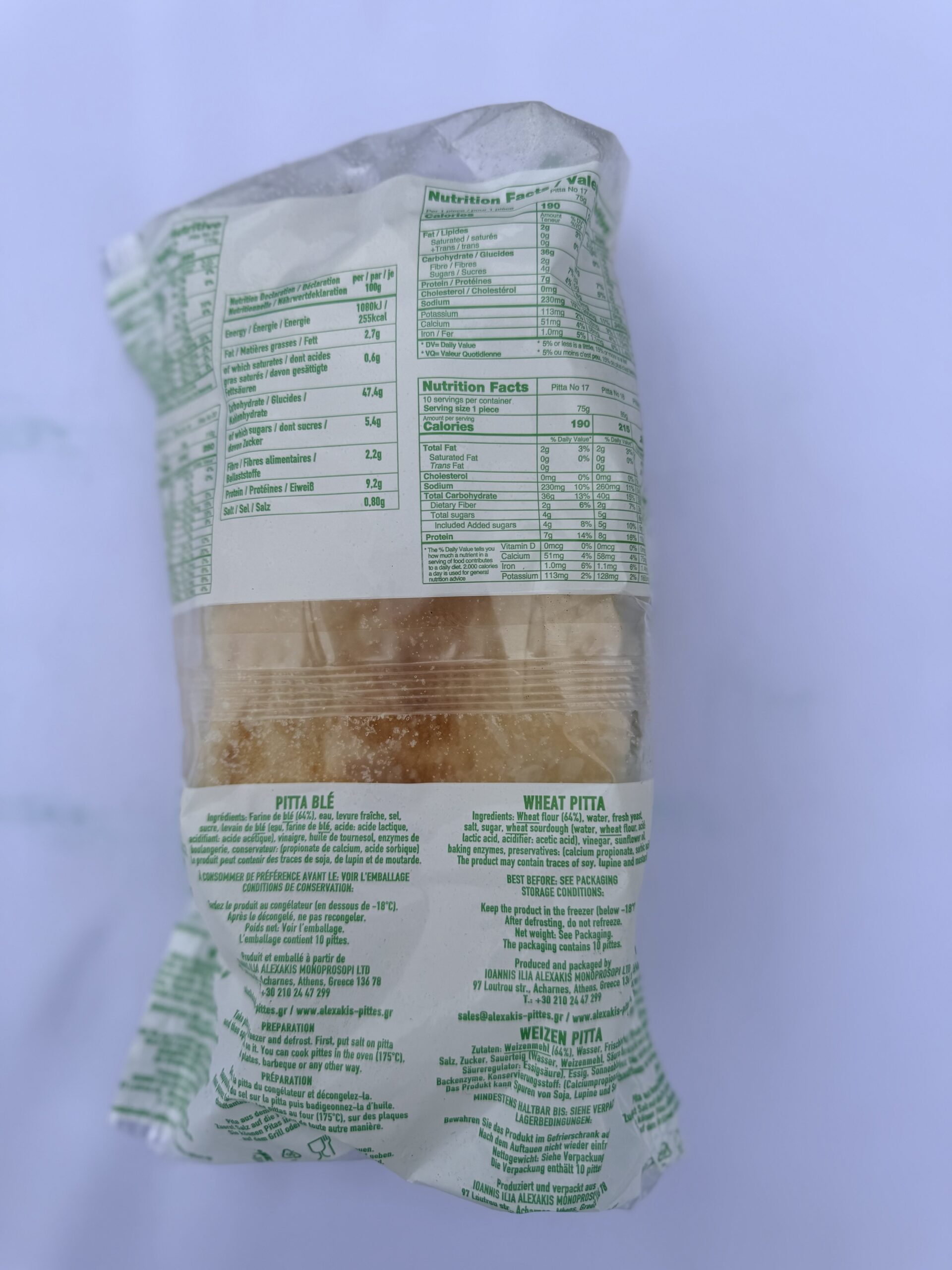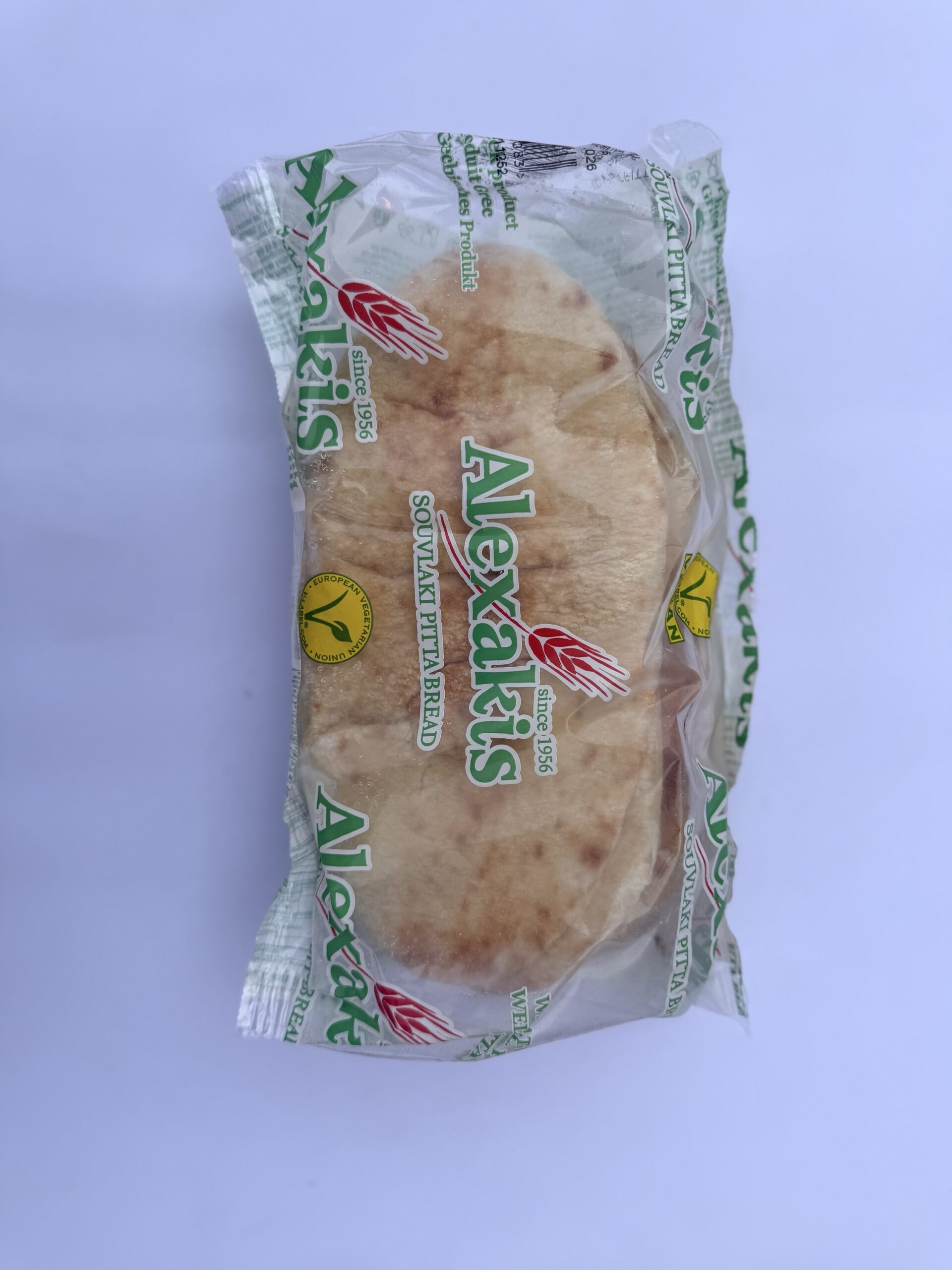 A popular, pre-baked, round flatbread made in Greece by the renowned Alexakis company. Its soft, fluffy texture and large diameter make it a top choice for making authentic Greek gyros and souvlaki, both for domestic and professional use.