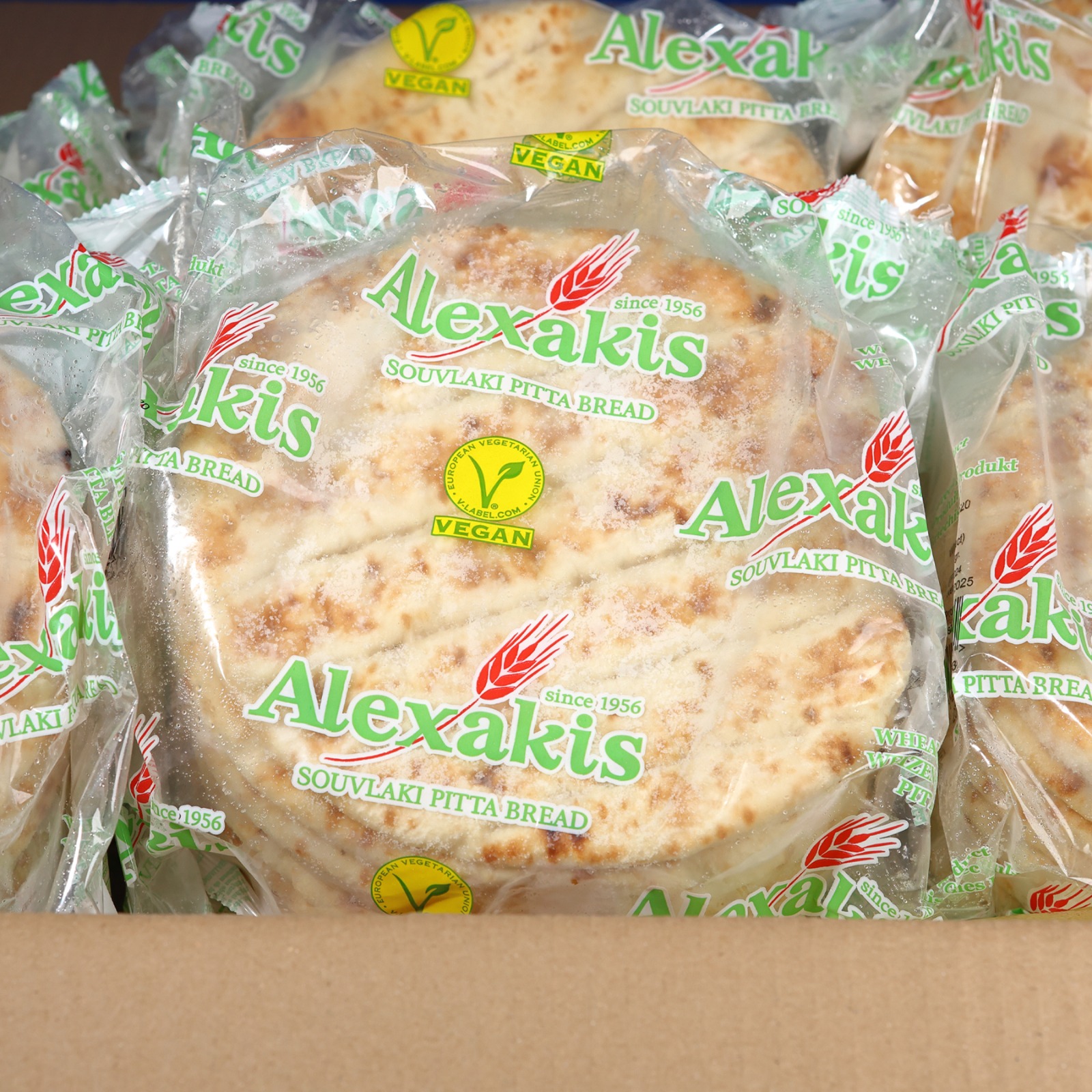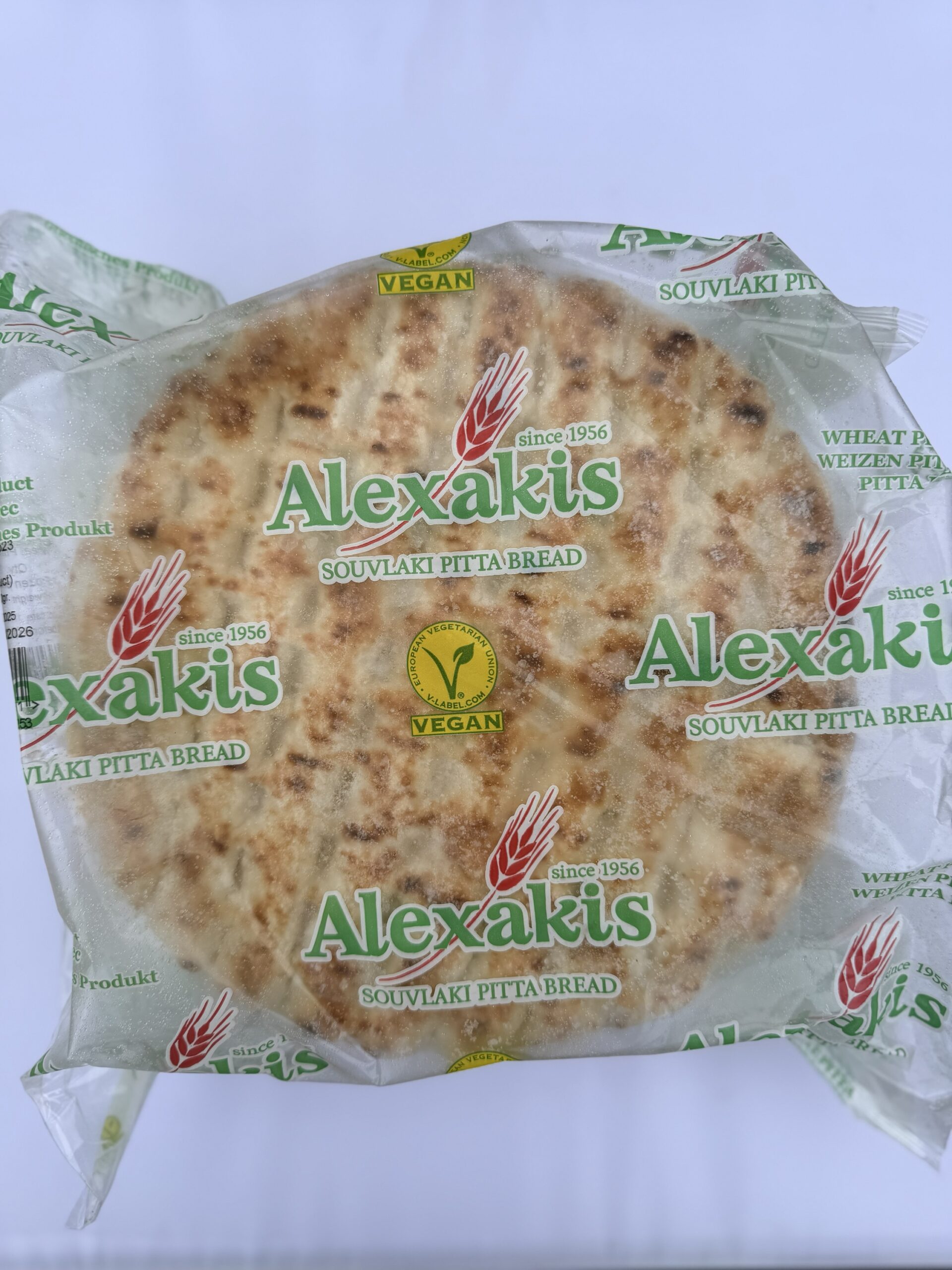 Alexakis 20cm Greek Pitta is a soft, pre-baked, traditional flatbread made in Greece by the Alexakis company. Its large size makes it particularly suitable for professional food service and for making generous wraps at home.Â