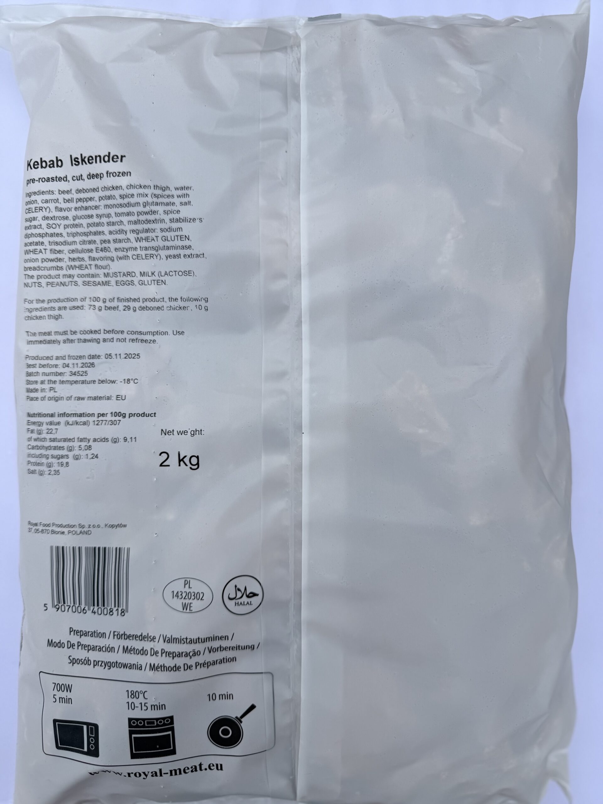 - Frozen and pre-cooked:Â The doner is cooked, sliced, and individually flash-frozen (IQF) to lock in flavor and moisture. This process drastically reduces preparation time for restaurants and caterers.