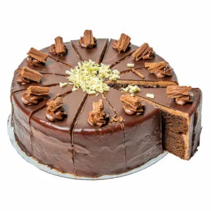 Chocolate sponge layered with Belgian chocolate fudge cream and chocolate ganache, topped with flake.