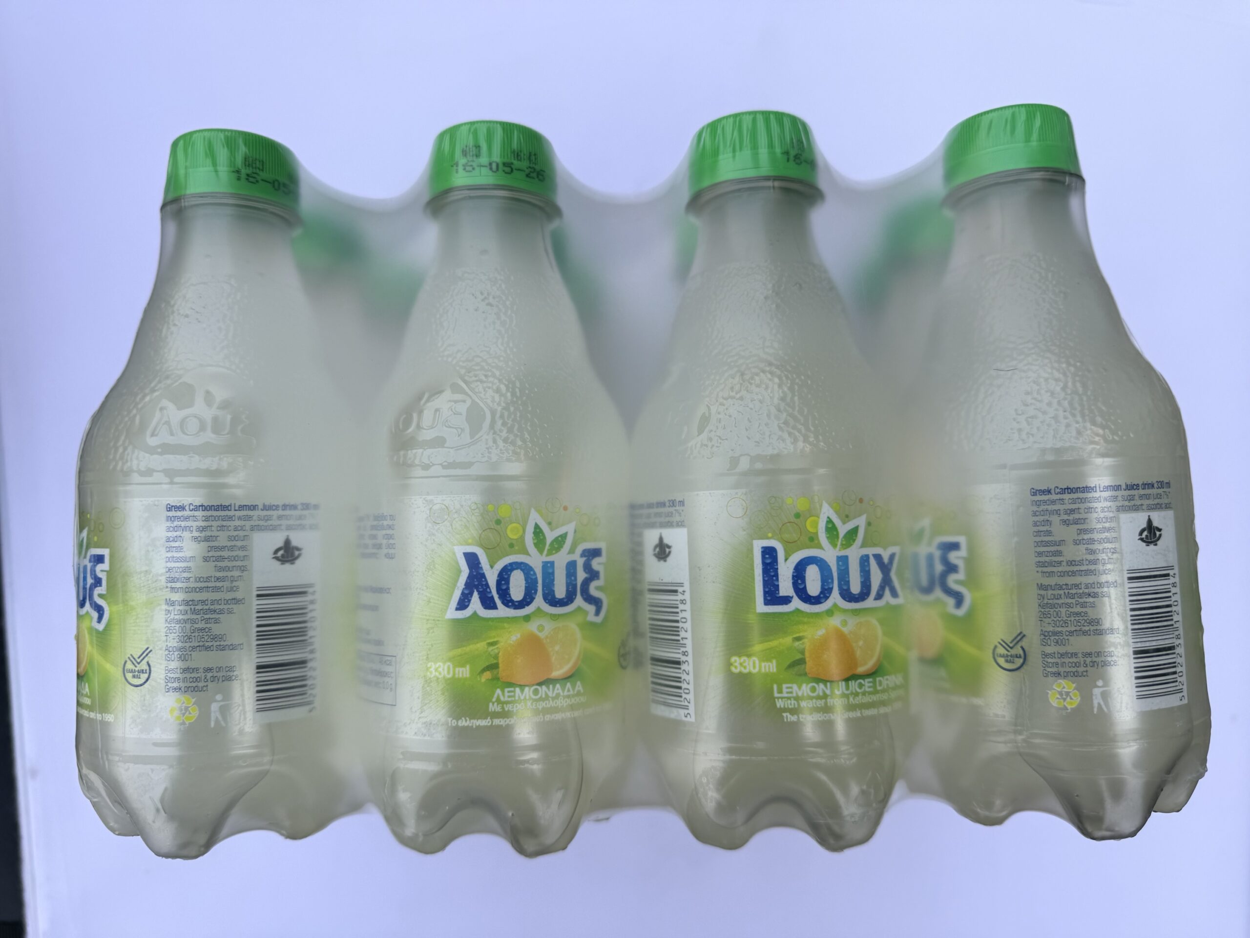 Loux Lemon is a traditional Greek carbonated soft drink, or lemonade, known for its unique balance of sweet and sour flavors and intense lemon aroma. It is made with real Greek lemons and spring water from the Kefalovrissos spring in Greece.Â